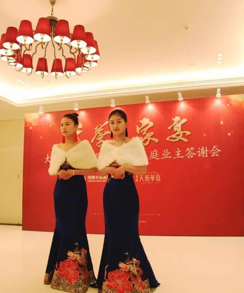 1月9日晚,“天誉·家宴——大地集团&领创·天誉华庭业主答谢会”在郑州裕达国贸酒店盛大启动,以此回馈广大业主对天誉华庭的鼎力支持和厚爱。大地集团携旗下领创置业、大地水泥、贾湖酒业等企业领导、代表,与各位业主、媒体嘉宾1000多人汇聚一堂,共同度过了一个温情难忘的夜晚。 寒冷的天气并未影响大家相聚的热情,下午不到5点,现场签到处已门庭若市,在工作人员贴心引导下,大家有序进行微信签到,进入答谢会现场。晚上6点左右,一段阐述大地集团恢宏实力和过往数载坚实历程的宣传短片拉开了本次活动的序幕。大地集团董事长张彪、贾湖酒业总经理赵书民、领创置业的执行董事殷红叶分别发表了热情洋溢的致辞。 为使各位来宾度一个欢乐充实的夜晚,“天誉·家宴”不仅有丰盛的美食、美酒,更有诸多精彩节目助兴!动感炫目的电光舞,让现场的来宾沉浸在梦幻美妙世界;展现领创·天誉华庭峥嵘发展轨迹的沙画&独舞表演,令在座各位充分领略了匠心品质的倾情缔造;炫酷的魔术表演、新奇好玩的泡泡秀,让人目不暇接;一曲《相亲相爱一家人》,天誉一家人,喜乐祥和气氛满溢! 紧接着,微信摇一摇抢红包以及多种重磅大奖的抽取颁发,将现场气氛又一次的推向了高潮。领创置业精心准备了多重好礼,表达了对于各位家人的感恩之情!苹果6S Plus、48寸液晶电视、洗衣机、电饭煲、富平春酒等丰厚礼品,超高得奖率,让不少业主好运连连,收获满满幸运大奖!寒冷的冬日夜晚因这里的欢声笑语变得红红火火、热情欢腾。 觥筹交错间,欢声笑语中,“天誉·家宴——大地集团&领创·天誉华庭业主答谢会”圆满结束。