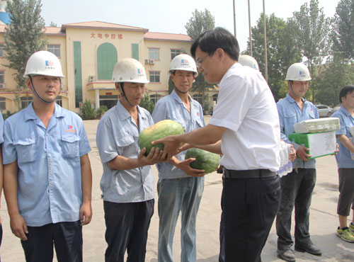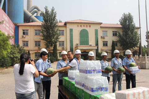 7月13日上午,在县总工会主席郭鹏飞的带领下,县总工会“夏送清凉”活动组一行来到大地公司,送来了西瓜、矿泉水、绿茶、毛巾等防暑降温用品,县委常委、宣传部长李庆豪,集团总裁崔泉发等领导参加活动。 丝丝清凉,浓浓情谊。县总工会“夏送清凉”活动为大地公司职工送来亲切的慰问和夏日的清凉,让广大职工感受到了党和政府的关爱,从而鼓舞了员工士气,激发了员工的工作热情。大家纷纷表示,要提振信心,奋战酷暑,确保顺利完成各项目标任务,为企业的发展作出积极的贡献。