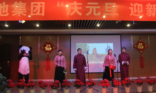 欢歌劲舞辞旧岁,凝心聚力启新程。12月30日晚,大地公司北门会议室热闹非凡,其乐融融,米兰网站“庆元旦 迎新春”职工联欢晚会正在激情上演,县总工会副主席崔锦钊、集团领导及来自各分公司的广大干部职工200多人欢聚一堂,共同迎接新年的到来。 集团总裁王国杰发表了热情洋溢的致辞,他首先向莅临现场的各位领导及来宾表示热烈的欢迎!向一年来辛勤奋战在各个岗位上的广大员工表示衷心的感谢!并肯定了2020年集团所取得的辉煌业绩,对新一年的工作提出了新的期望和要求。 晚会在欢快的开场舞《开门红》中拉开帷幕,歌曲、舞蹈、朗诵、武术、三句半等18个精彩节目轮番上阵,整场活动异彩纷呈、高潮迭起、掌声不断。 行政部四人组自编自演的三句半《大地赞》诙谐幽默,耐人寻味,传递出广大职工对大地大家庭的热爱。超萌可爱的“大熊猫”也前来凑热闹,摆出各种姿势,惹得观众捧腹大笑,为晚会增添了不少情趣。