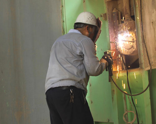 烈日炎炎战犹酣,只争朝夕加油干。走进检修现场,呈现在眼前的是一幕幕如火如荼的劳动场面,只见参检人员全副武装,满身油渍,两人一组,三人一群,拆装设备,切割焊接,忙而有序,不亦乐乎。广大一线职工不怕苦、不怕累,战高温、斗酷暑,在各自的岗位上默默坚守,任豆大的汗珠顺着他们的脸颊流淌,滴到设备上,流到衣服上,厚厚的工作服早已被汗水浸透,留下一道道白色的汗渍。天气再热,大家的工作劲头一样高涨,温度再高,他们精益求精的工作态度始终如一,那一个个专注投入的镜头,一幅幅聚精会神的画面,令人感动,让人敬佩。