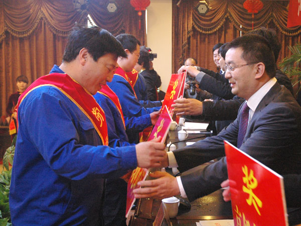 2013年3月16日上午,大地公司北会议室内座无虚席、掌声雷动,到处洋溢着喜庆祥和气氛,大地集团2012年度工作总结暨表彰大会隆重召开。副县长魏学君、县总工会主席郭鹏飞、集团领导、受表彰的先进工作者、优秀经销商、供应商及部分职工代表共700多人参加了会议。 会议由党委副书记王福文主持。会议首先由集团董事长张彪作工作报告。报告对2012年的工作进行了系统回顾总结,充分肯定了所取得的成绩,同时指出了工作中存在的不足和问题,分析了当前面临的形势和任务,并对今年的目标任务提出了明确的思路和要求。对做好2013年的工作,张董事长强调重点抓好7个方面的工作:一、坚持强管理、促销售、创高产、增效益、勇创新的指导方针。二、积极引进先进生产管理人才和技术人才,创造先进的管理模式,加强与先进企业的对标管理,促进生产制度和管理制度的创新,使经济技术指标达到或超过同行业的先进水平。三、坚持“至高品质、至诚服务”的宗旨不动摇,坚持走名牌销售战略,充分发挥大地水泥的品牌优势,鼓励培育专营经销商,并向2级、3级网点发展,牢固占领现有市场,努力拓展新市场。四、加快现有项目的建设进度,确保按计划竣工投产。五、继续坚持“人才是企业第一资源”的指导思想,根据企业发展需要,制订公司中长期人才供需规划,建立人才数据库,为企业快速发展提供人才保障。六、不断充实米兰网站核心内容,将良好的米兰网站渗入企业肌体,形成一个风气正、人心齐、奋发向上、包容和谐的良好氛围,为企业的快速发展提供动力和正能量。七、进一步绿化、美化厂区,做好厂区环境整治,打造环境最美的花园式企业。 会上,集团总裁崔泉发宣读了“关于表彰2012年度先进集体和先进个人及优秀经销商、供应商的决定”。对荣获劳动模范、技术能手、忠诚卫士、先进集体、先进工作者代表和优秀经销商、供应商代表进行了颁奖。先进单位代表、先进工作者代表、优秀经销商代表分别作了典型发言。 最后,魏学君副县长作了重要讲话。他说,大地集团已连续五年蝉联宝丰县纳税第一名,特别是2012年,在建材市场形势严峻的情况下,仍实现纳税达1.4亿元,连续两年成为我县纳税超亿元企业。县委、县政府将一如既往地高度关注大地集团的发展,努力为大地集团营造更加宽松、更加良好的经济发展环境,坚决做好大地集团发展的坚强后盾。希望大地集团抢抓机遇,创新科技,做大做强,为县域经济的发展作出新的更大的贡献。