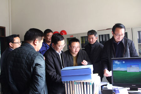 检查组一行认真审阅档案资料 |