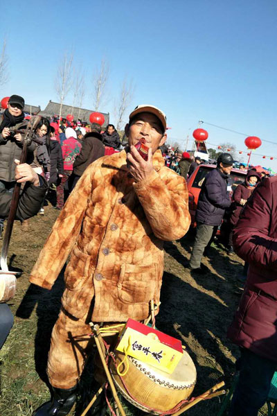 这会累了!停下来歇一会!来自安徽界首市的老艺人一曲唱罢,拿起一瓶富平春酒准备喝上两口。笔者上前问起美酒的来历,他告诉笔者地上摆着的几瓶酒都是人家富平春酒业公司人员免费送的,还有扫码获得的。 经过采访得知这位老艺人是安徽省界首市仁寨乡幸福村的,名叫陈玉雪,是第一次来赶马街书会,这次他们是组团来的,联合了附近14个民间艺人一起来赶马街书会。他18岁开始学戏,今年61岁了还在经常参加当地的一些演出活动。他在书会上亮艺演唱河洛大鼓《打棒槌》、《刘四姐挨打》等段子。 “经常喜欢喝点酒,这不唱累了,喝一点提提劲,再唱!”他还说马街书会这个大平台太好了,还有这么多爱戏的群众,还有热心周到的服务,在会上还得到了这么好的美酒礼物,明年的书会一定还要来。 古老的马街书会作为曲艺人的圣地,每年都召唤着他们前来献艺交流,富平春酒业在书会大派送活动中惦记着这些来自全国各地的民间艺人,为他们送上了富平春美酒来为他们演出助兴,拿到酒的艺人都非常高兴,一个劲的夸赞富平春酒业想得真周到。
