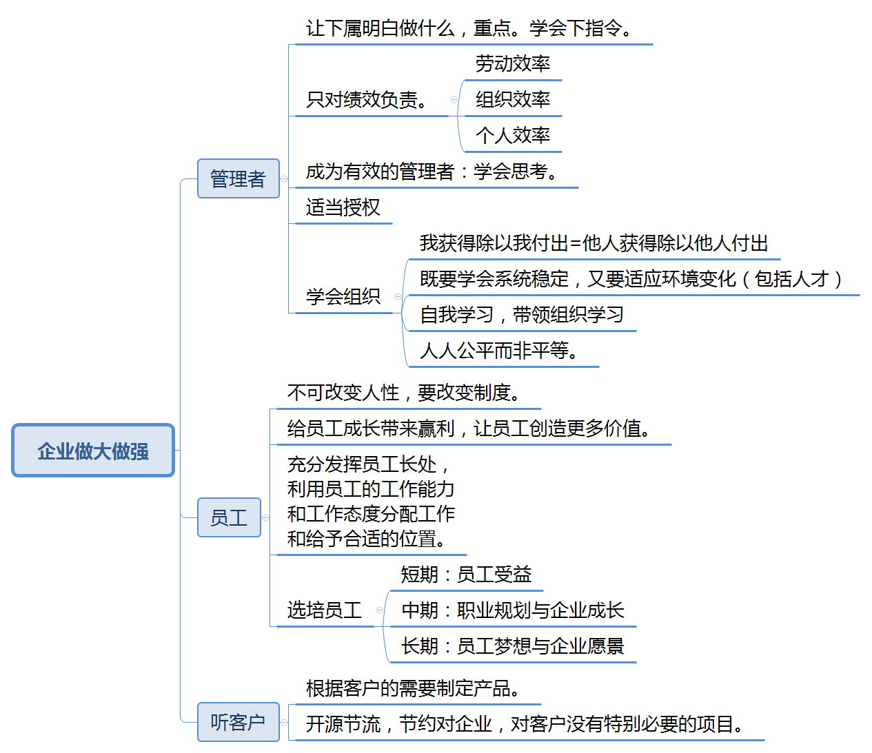为期5天的中旭培训学习结束了,非常感谢公司对我的信任,为我提供了这次宝贵的学习机会。管理者的五项修炼,使我收获很大,自己对管理这件事和管理者资格角色都有了更深刻的认识,这些知识对于今后的工作有很大的帮助和提升。 管理者的五项修炼,从基层,中层到高层管理者,全面的讲解了什么是管理者,如何成为一名合格的优秀的管理者。不仅使我对当下的工作有了新的认识,也对未来的的工作有了更明确的方向。同时,对集团的很多决策有了深入的理解,对米兰网站也有了新的认知,加深了对企业的认同感。 以下是这5天培训的一些心得体会: 一、管理者与管理的目的 管理者的作用是解决问题而不是成为问题,管理是为了解决效率问题。 管理者不是每天坐在办公室里思考问题,而是要发现问题并能够解决问题。没有调查,就没有发言权。所以要经常与上下级沟通,发现问题才能弄清楚问题的根本原因。与上级沟通能够更好的理解领导布置的任务,与下级沟通能够了解每个人的长短处,分工才能让正确的人去做正确的事。 二、通过改变制度从而改变人的行为 制度就像河道,人就像河道里的水,水本身没有好坏,人也一样。 制定一个适合自己公司门的制度不仅可以约束员工,同时还能激励员工。每个企业和部门都有不同的实际情况,制定制度不能生搬硬套,没有最好的制度,只有适合的制度。 三、管理始终为经营服务 一般人们总是说经营管理,在培训之前我也一直以为是一件事,通过培训学习才知道,两者有着本质的区别。 经营解决收入问题,管理是为了控制支出;经营是为了增大被减数,管理是为了减小减数;管理做的再好也不会做到不支出,但是经营不好却可能没有收入。经营的第一要素是客户价值,公司对外经营有客户,部门对内经营一样有客户。一条生产线、上下游部门之间、平行部门之间都是彼此的客户,经营好各部门的客户才能有效合作、减少浪费和失误,才能真正做到减小减数,提高公司利润。 四、管理事和领导人 俗话说,铁打的营盘流水的兵,其实就是说的流程管理。 一个公司,一个部门,一个岗位,人员都在不停的流动。通过制定一个固定有效的流程,可以很好的避免因为人员流动造成的重复培训浪费、提高工作效率。比如以我现在的岗位中控操作员为例,按照操作规程操作,新进的学徒也可以很快掌握操作的要点重点,学习起来就事半功倍。 五、管理追求对等而非平等 因为分工不同,每个人承担的责任是不一样的,所以每个人的回报也是不一样的。在看到自己和别人回报的差别时应当首先想一下我们担当到的责任是不是一样,付出是不是一样。责任,权力,利益相互平衡,管理才能平衡,任意一点失衡,人们就会通过牺牲另外两点来弥补。 另外,通过学习,我对企业如何做的更好有了初步的认识,如下图: 虽然这次学习时间有限,但却为我打开了一扇新的大门,为今后的学习指明了方向,同时也认识到了自己的不足。今后我会把所学的知识运用到实际工作中来,使自己的工作水平有所提高,也为公司未来的需要做好准备!正如老师所说的,在我们不得不变老的路上,让我们一起变得更好! (中控室:李兵耐) |