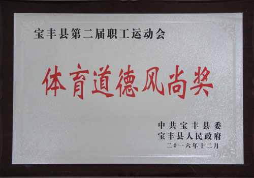 首页 >> 米兰(中国) >>资质荣誉 >> 宝丰县第二届职工运动会体育道德风尚奖