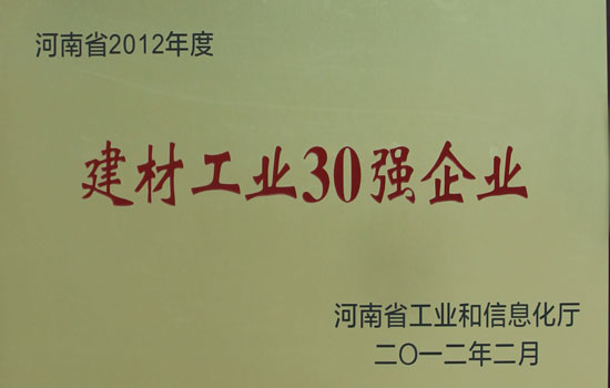首页 >> 米兰(中国) >>资质荣誉 >> 河南省2012年度建材工业30强企业