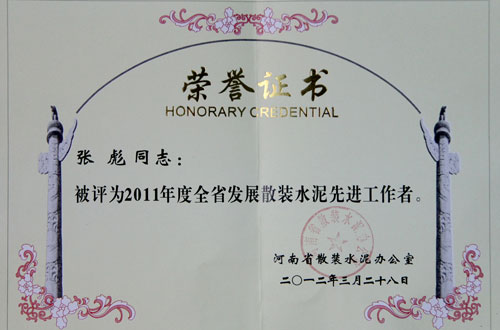首页 >> 米兰(中国) >>资质荣誉 >> 2011年度全省发展散装水泥先进工作者
